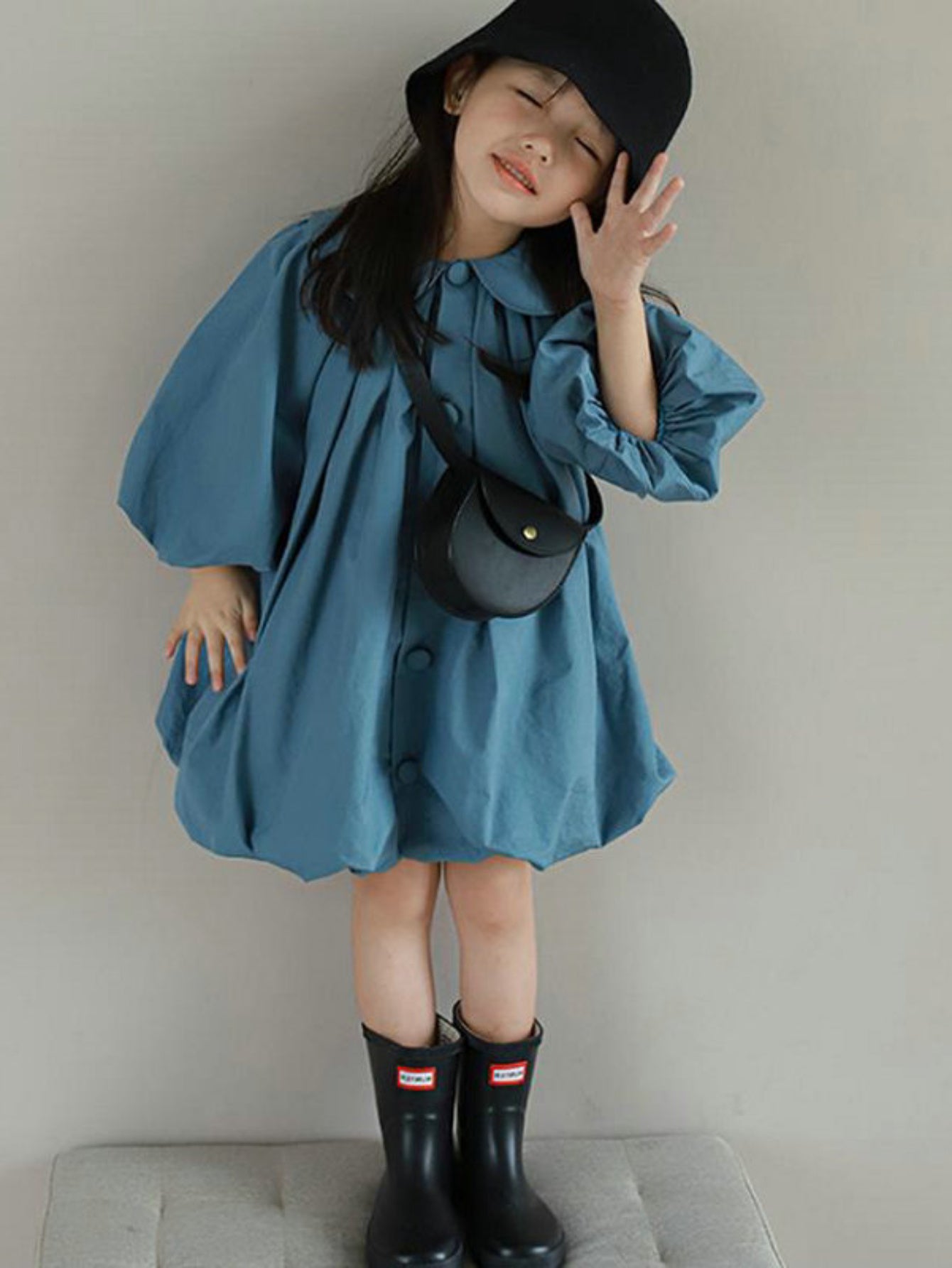 Girls' Casual Cotton Dress with Button Detail