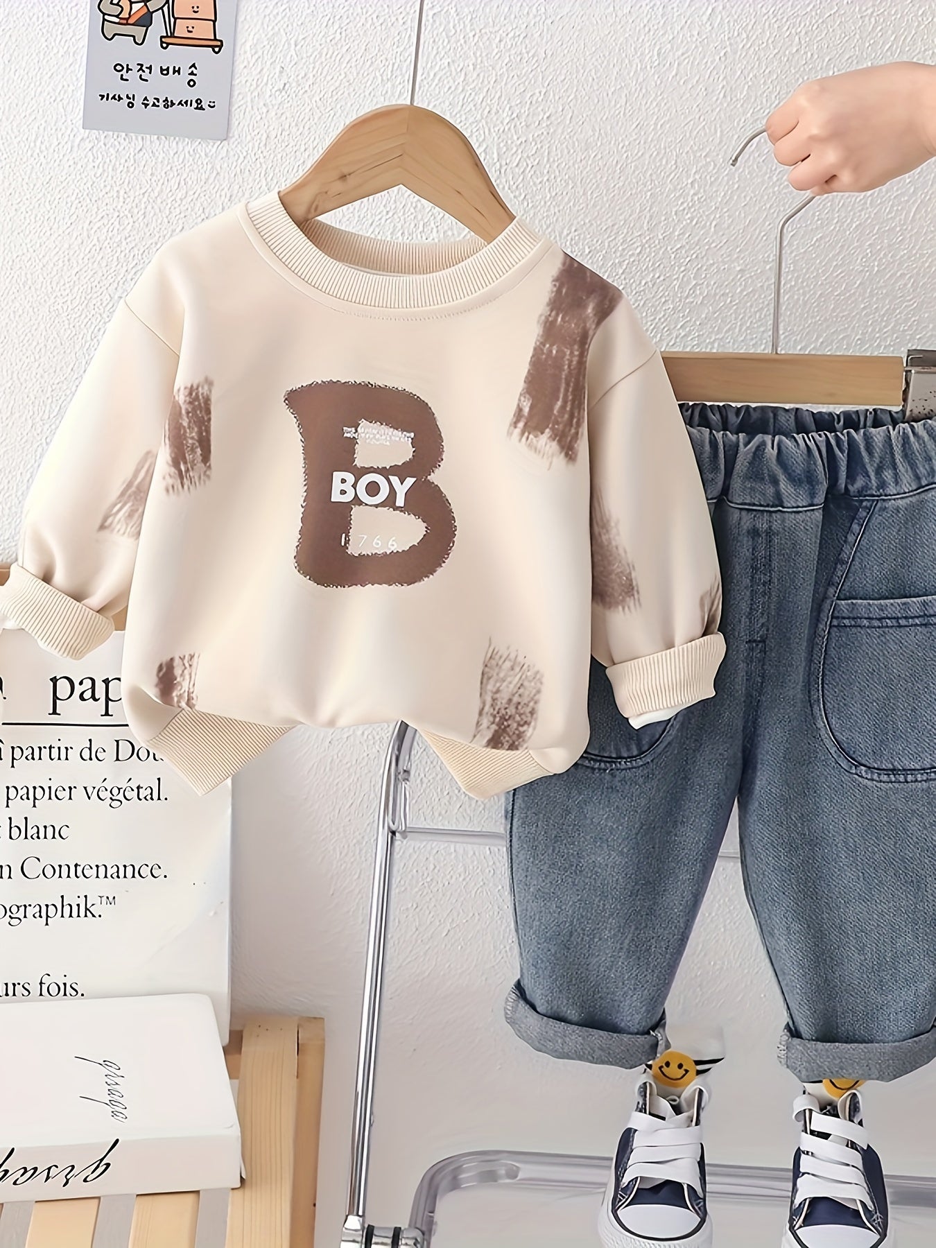 Boys' 2-Piece Cotton Blend Sweatshirt & Denim Pants Outfit