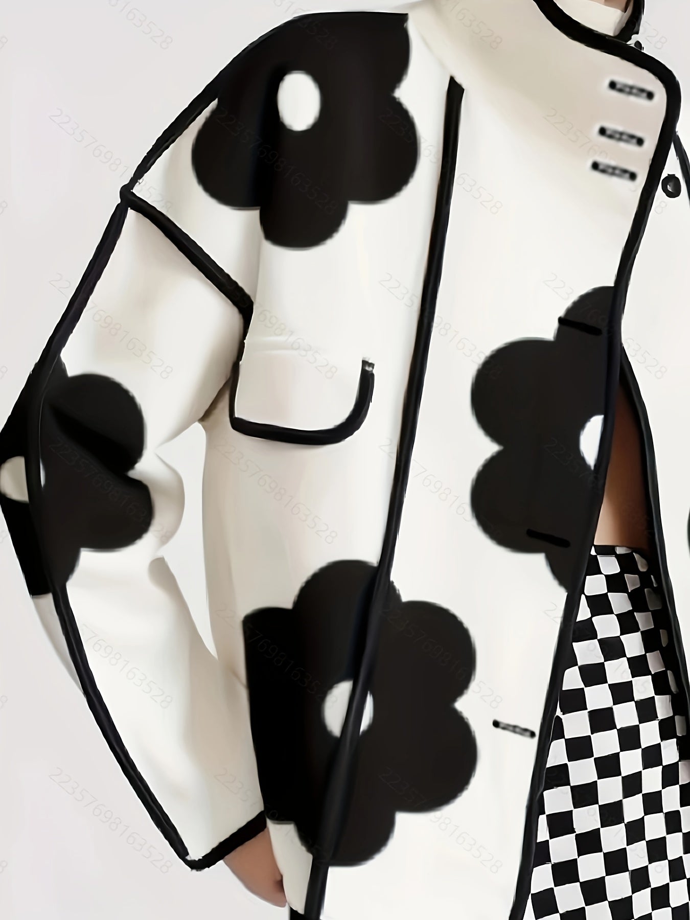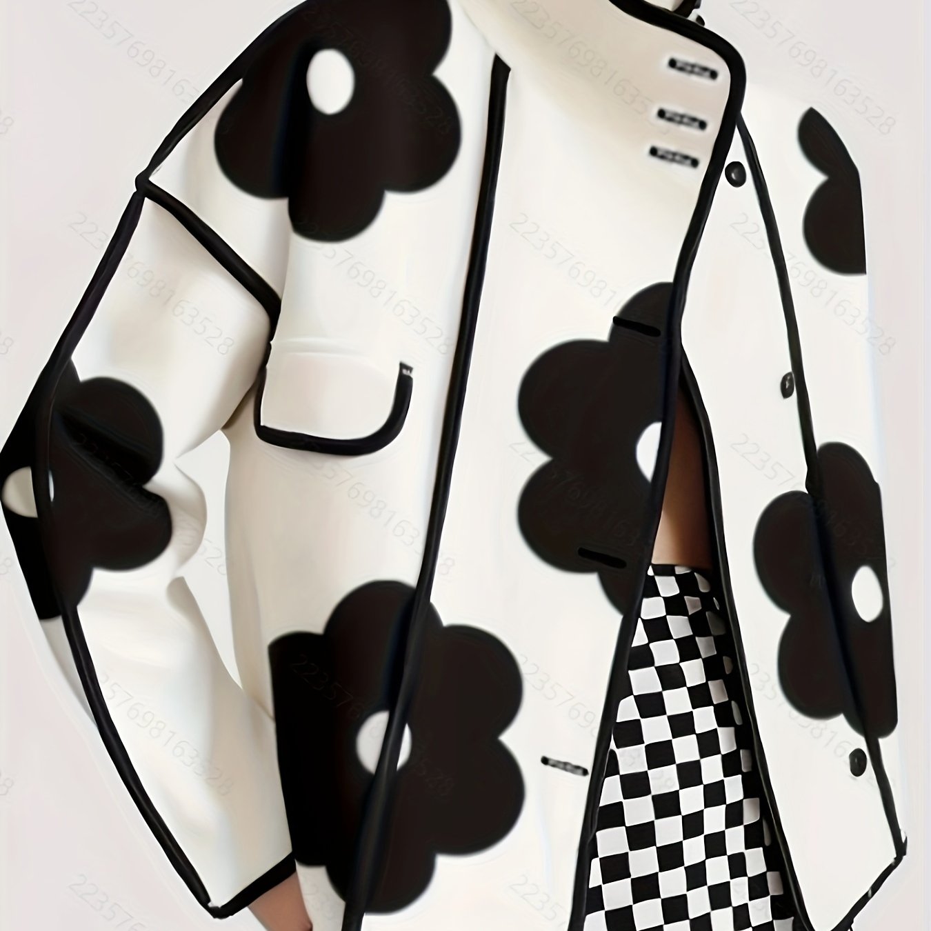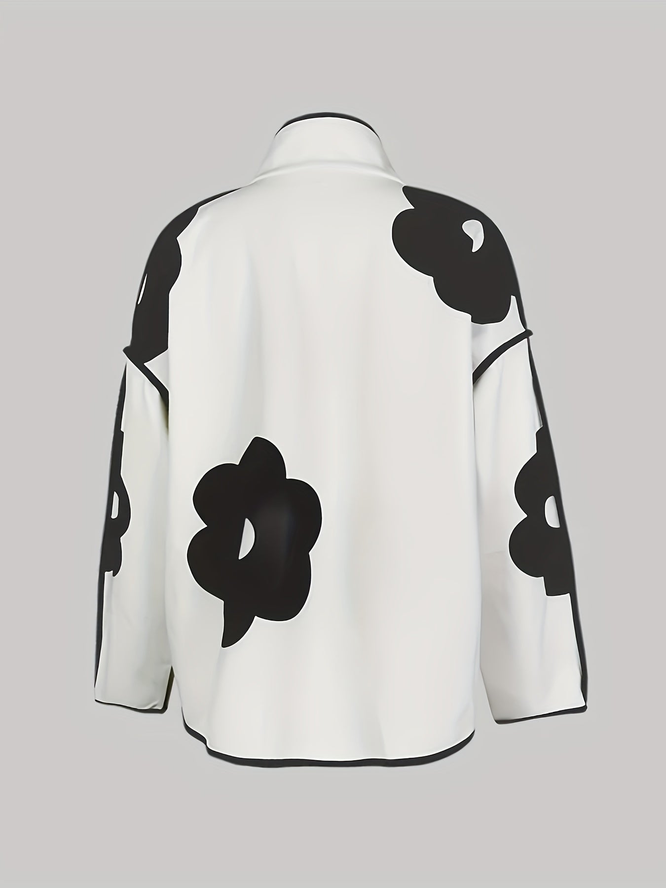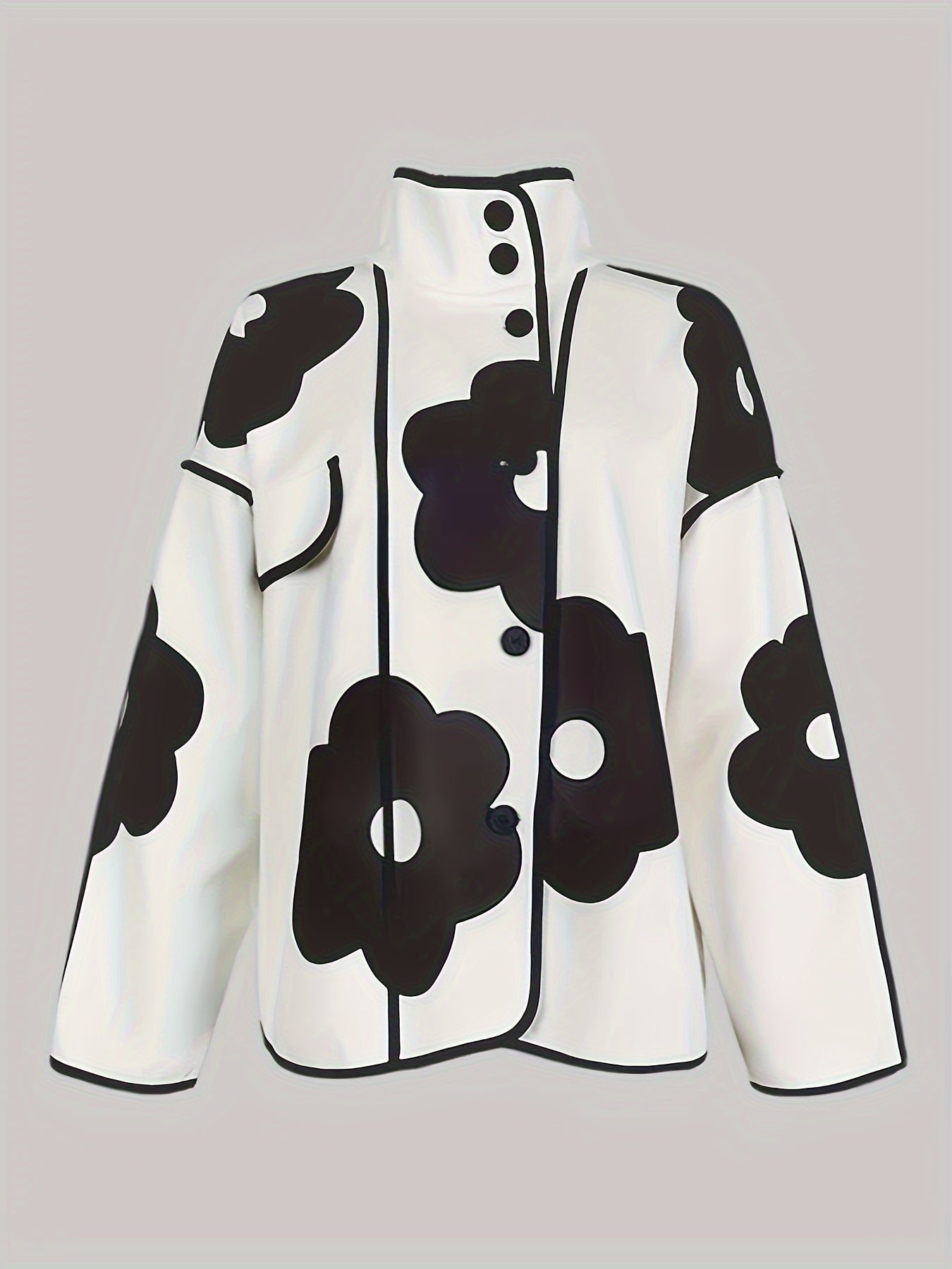 Polyester Casual Stand Collar Floral Print Open Front Button Jacket, with Long Sleeve